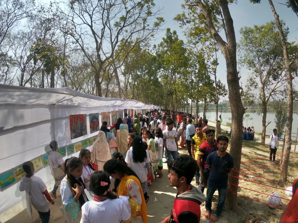Following my retirement Faculty of Fine Art, University of Dhaka, Bangladesh, I became fully involved with Art Bangla Foundation, an interdisciplinary art organization dedicated to encouraging creativity and community engagement. Through this foundation, we have organized six international art festivals (Bangla Art Festival) in the Rural area, bringing together around 200 schoolchil dren, 20–30 prominent artists, including international participants, 50 emerging artists, and students from numerous art institutions. These festivals feature installations, large-scale art projects, exhibitions, and public programs. Alongside these events, we also conduct initiatives addressing climate change, environmental sustainability, food security, and women’s empowerment. This work is deeply meaningful to me, and I continue to envision new projects that spark dialogue and inspire social awareness through art
